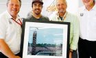 That gave Ferrari a 1-2 success, and above is a shot of Michael, Rubens and Ferrari race engineer Chris Dyer celebrating their success. BAR's Jenson Button retrospectively took the final podium position.
