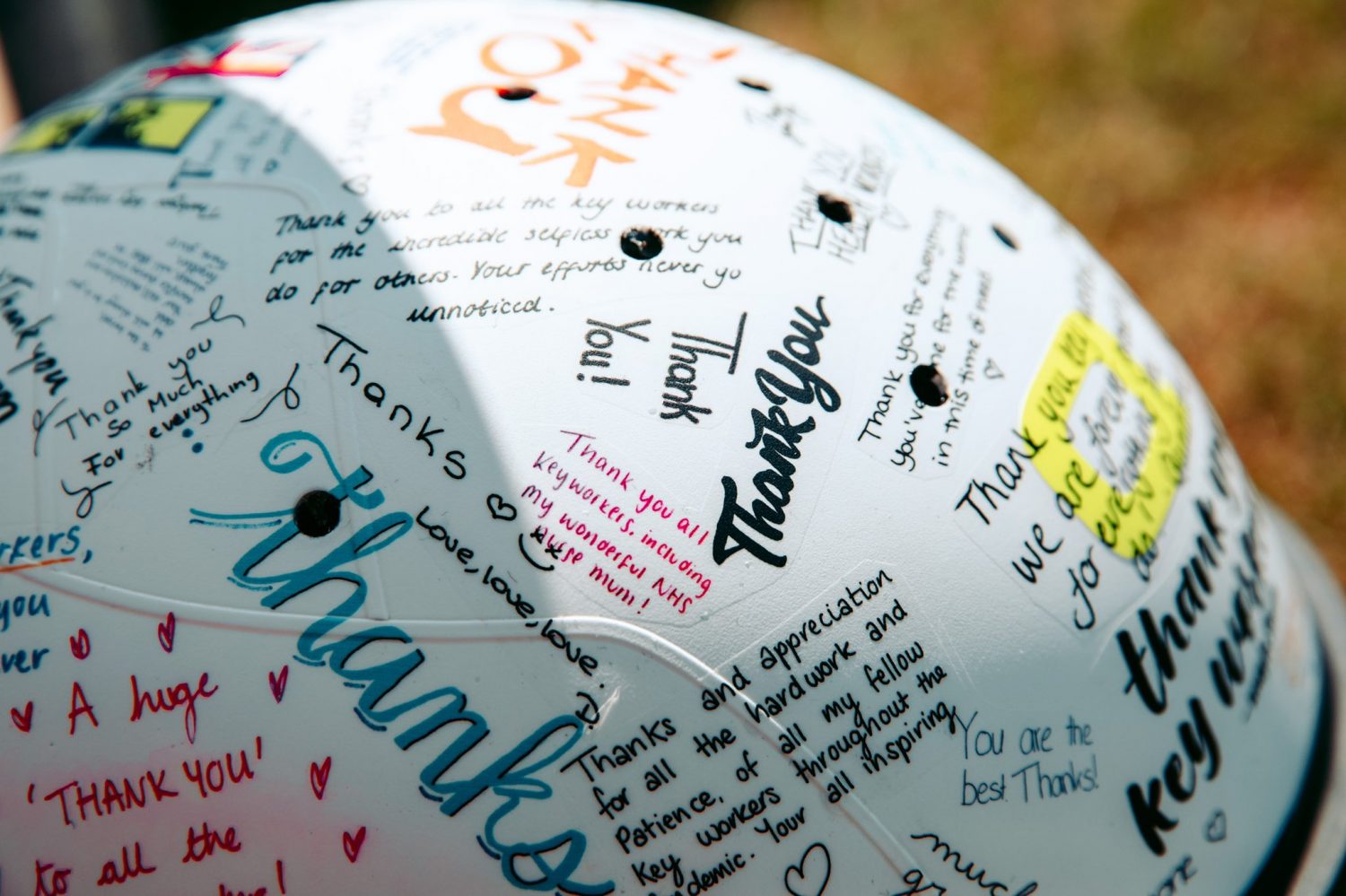 The many words of gratitude appear on Norris' helmet in their original form, and the very special lid will be raffled at the end of the weekend in support of Our Frontline, the round the clock, confidential mental health support organization for frontline workers.
