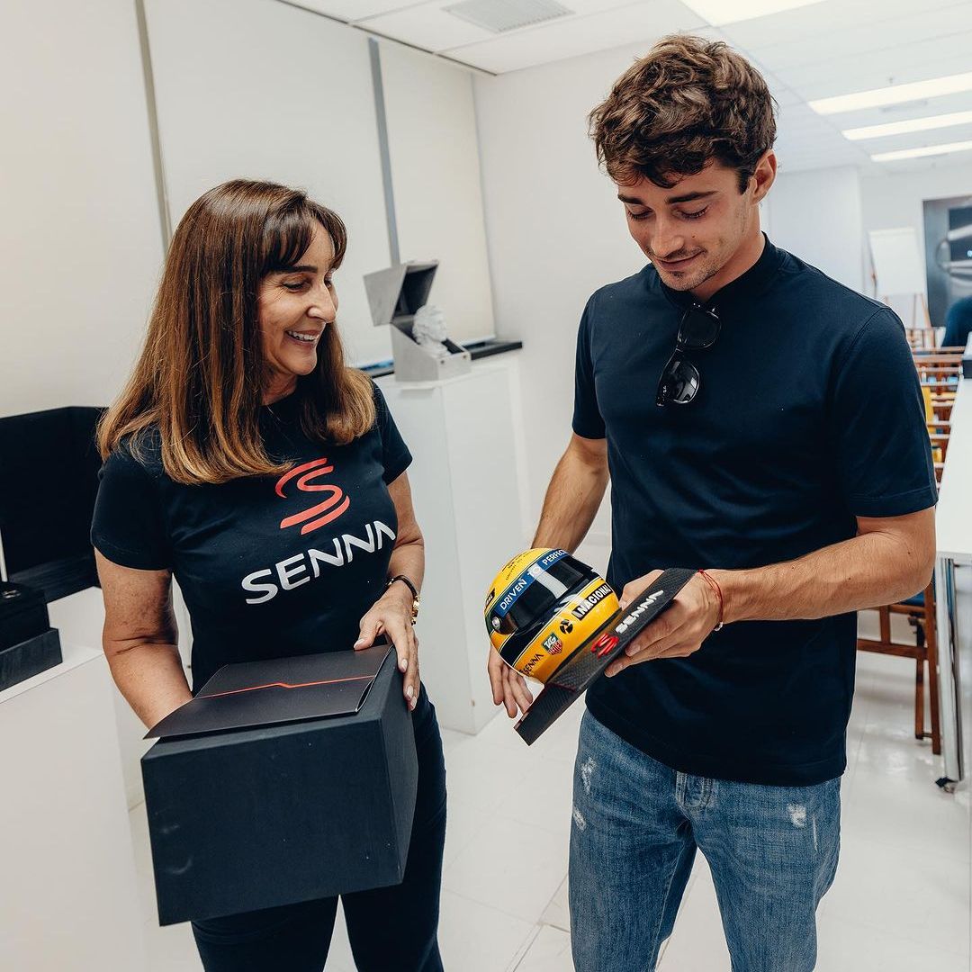 The Ferrari driver was invited to the Foundation by the family of the late F1 legend, with Ayrton’s sister Viviane, who presides over the institution's activities, greeting the Monegasque.
