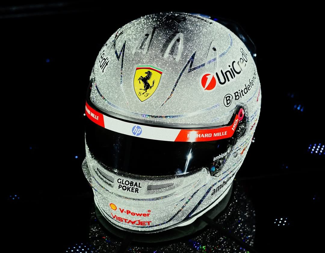 This weekend, the Ferrari star is rolling the dice with a helmet that looks like it was sculpted out of pure stardust.