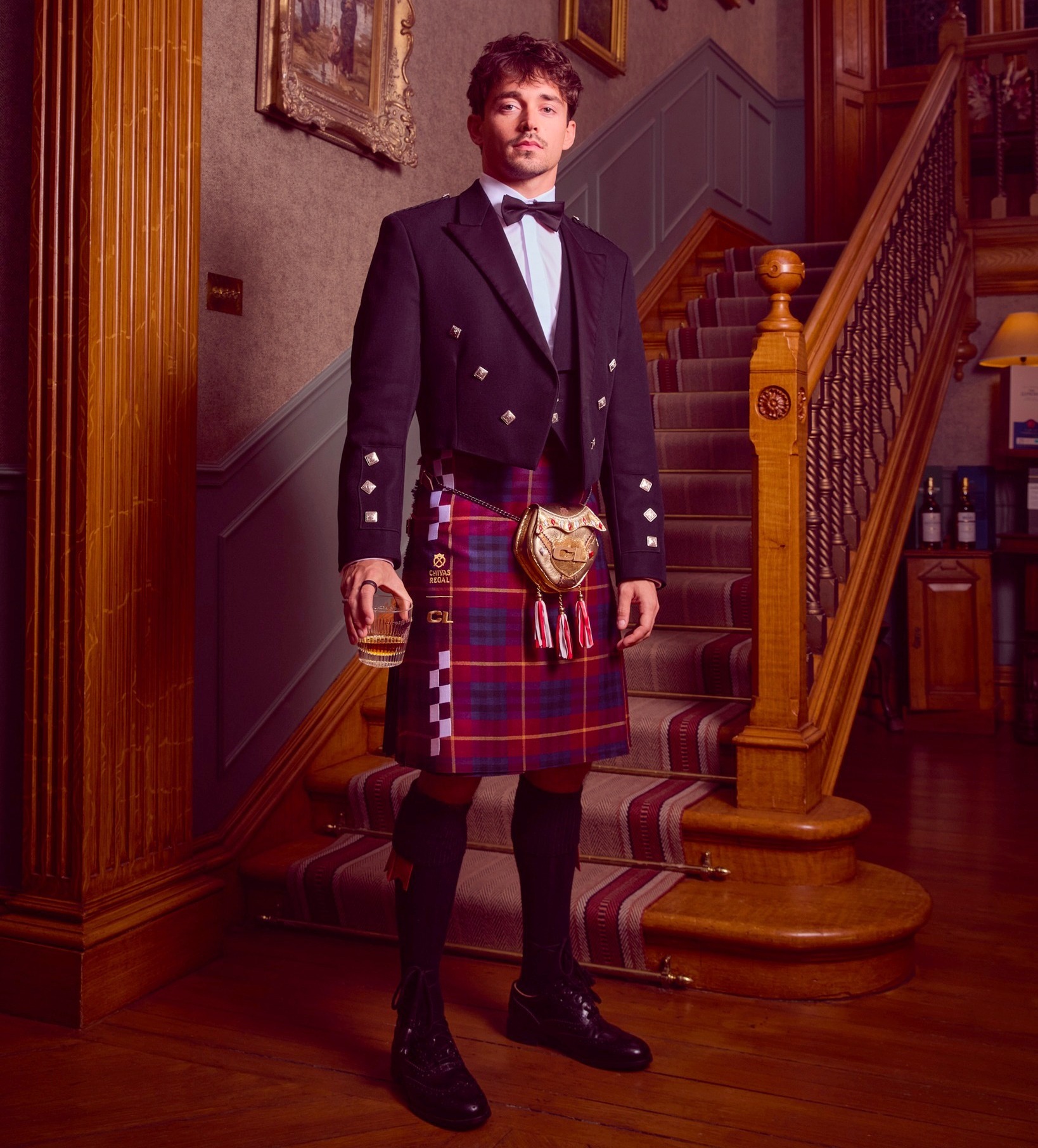 To celebrate his new partnership with luxury whisky brand Chivas Regal, the Ferrari star made the bold choice to rock for the occasion a bespoke kilt with golden accents, a personalised sporran, and the confidence of a man who could absolutely win a ceilidh dance-off.