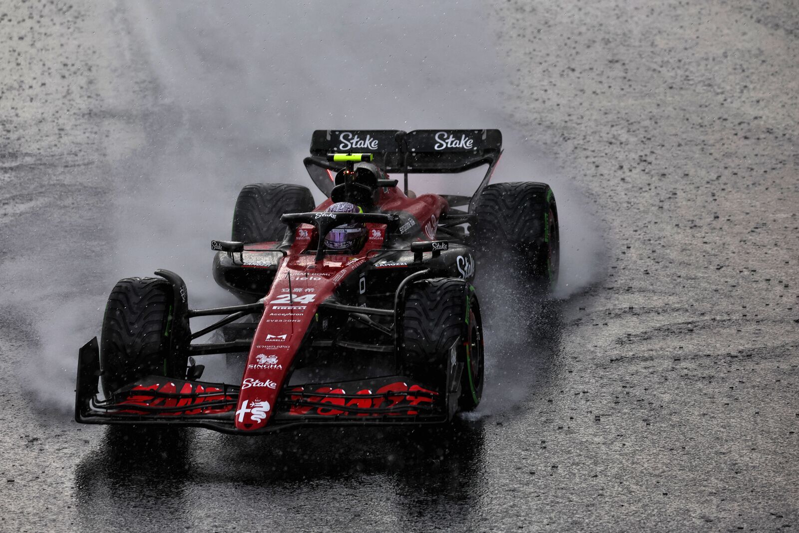 Zhou Guanyu never looked happy at Zandvoort, and his highest placing during practice was a mere P15 in FP2, at no time coming close to matching the pace of his Alfa Romeo team mate Valtteri Bottas. There wasn't much surprise then when he just missed the cut at the end of the first round of qualifying although he was at least ahead of the Finn this time. He got a fortunate break when he was among those to make an immediate pit stop for intermediates at the end of lap 1 as the rain fell, and as a result found himself running in second place behind Sergio Perez. It couldn't last of course and faster cars soon came cruising past, leaving him in a still-creditable sixth place. When the rain stopped the team opted to put him back out on mediums in the hope of a longer stint, but that did't work out well for him and by the time he pitted again on lap 37 for softs he was down in 12th. That's where he remained until the rain returned with a vengeance and he aquaplaned off into the barrier in appalling conditions on lap 63. He was just happy not to have been injured in the violent conclusion to his race.