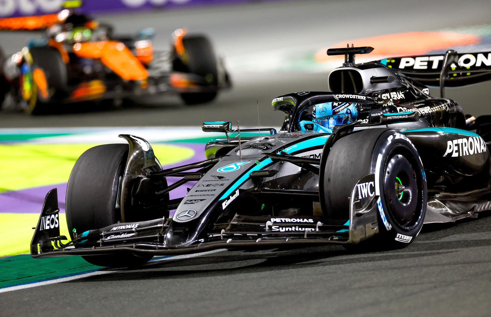 The Saudi Arabian Grand Prix was probably Russell’s worst race weekend so far in 2025, which is saying something considering he still finished in P5. Qualifying went very well for the British driver, finishing in third place and believing he could have gotten pole were it not for overheating tyres in the final sector. In fact, overheating tyres were the downfall of Russell and Mercedes during the race itself; he held third for a good while but was forced to slow down and protect his tyres from tearing apart. Leclerc and Norris passed him in relatively quick succession as a result.