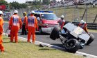 Perez suffered a failure on the right rear corner of his car exiting Turn 11 and hit the barrier, with one of the front tyres then folding under the car and causing him to roll. With the Force India coming to rest upside down, Perez was fortunately able to climb out of the car unaided and was deemed unhurt after a brief visit to the medical centre.