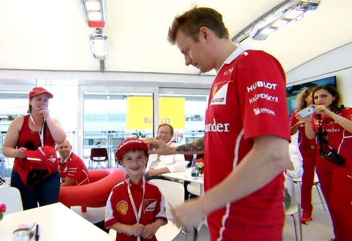 Ferrari quickly dispatched a representative to the main grandstand however to bring the boy and his family to its hospitality unit in the paddock for a heart-warming meet and greet with Raikkonen.