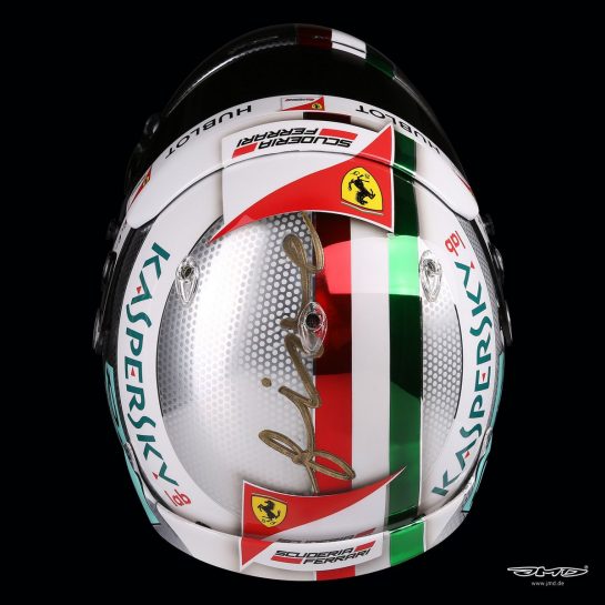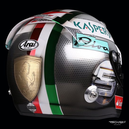 F1 drivers are allowed one design change during the course of the season, and here, Vettels' usual theme gets an Italian job design which pays tribute to the Scuderia and by extension to the tifosi.