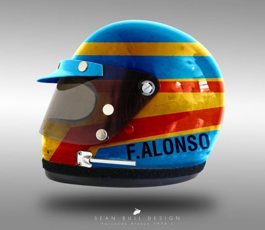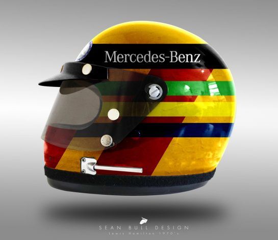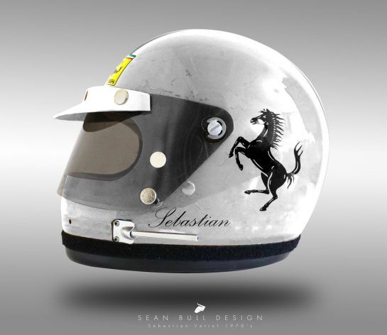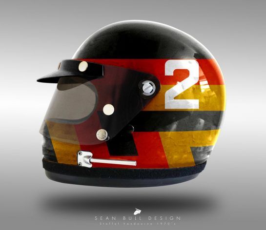 Sean took a vintage Bell helmet from the 1970s and visualised how it would look for each driver once painted with their current lid design.