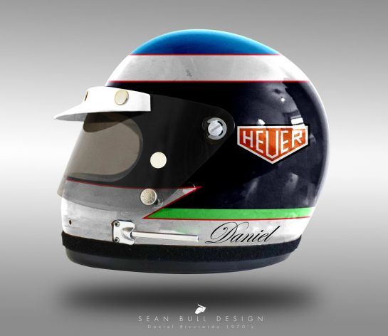 In most cases, he went for a clean motif, void of any sponsorship presence, with designs and colors representative of a driver's original helmet livery.