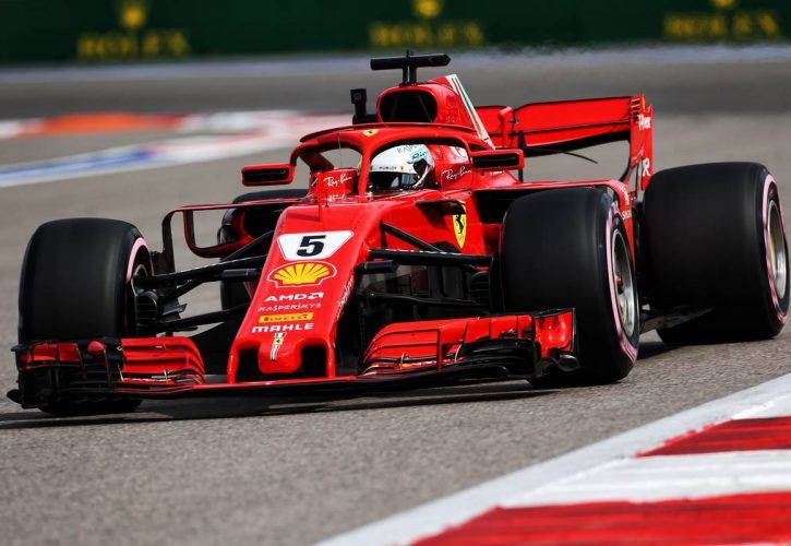 Sebastian Vettel and Ferrari enjoyed a good start to their Russian Grand Prix weekend, the pair outpacing Red Bull's Max Verstappen and Mercedes' Lewis Hamilton in Friday's opening session, with a lap in 1m34.488s that put him 0.050s clear of his closest rival.