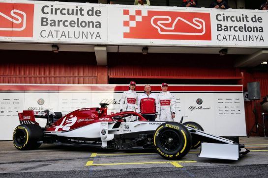 There was no bold livery to admire at Alfa Romeo Racing this morning in Barcelona, but the team's 2019 car still looked sharp in its standard white and 'rosso' colors.