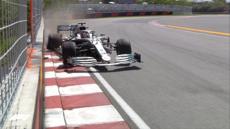 As impressive as the Silver Arrows were, stepping over the limit at the Circuit Gilles Villeneuve is a risky proposition as Hamilton demonstrated when he hooked the kerb and lost the rear at Turn 8-9, clouting the wall with the right rear.