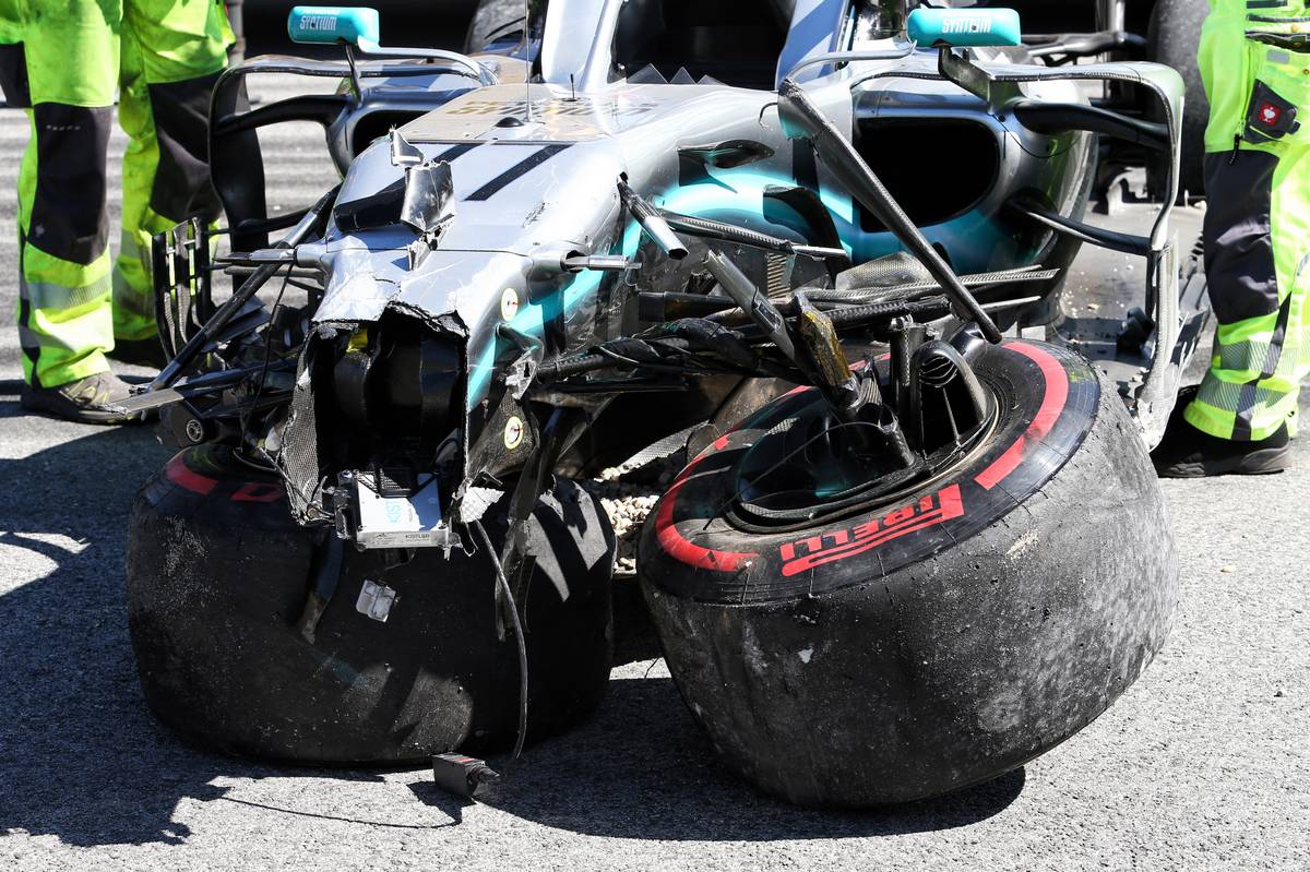 No sooner had the action gone green that it was back to red, courtesy of Bottas who had veered off the track at Turn 6, heavily clouting the barrier and destroying the front end of his W10.