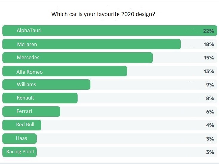 F1i readers, we've tallied your votes to select your favourite design for 2020 and we'll admit the result is hardly a surprise.