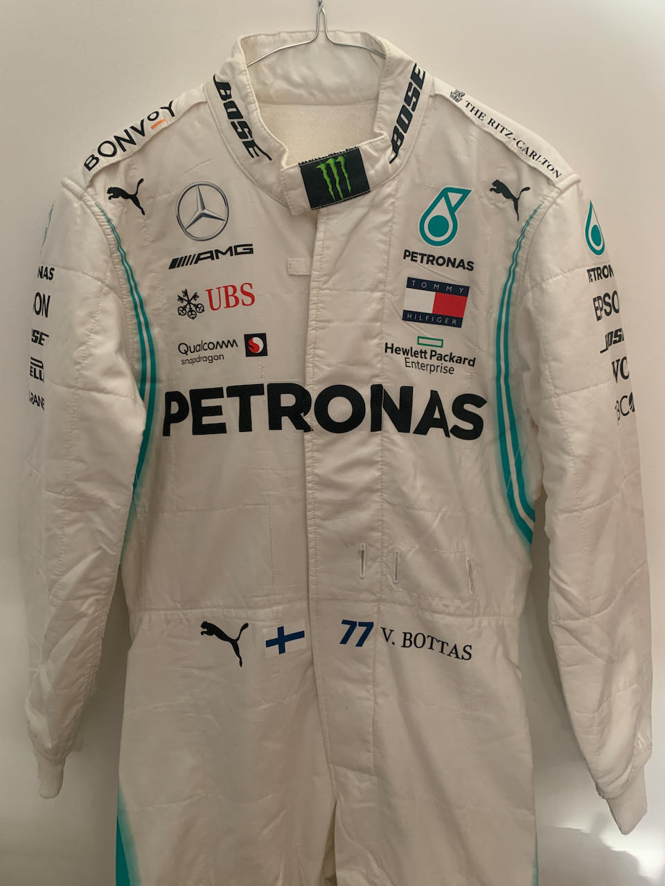 Lewis Hamilton and Valtteri Bottas have each donated a pair of 2019 race suits to Bonham for the benefit of The Blue Auction in aid of NHS Charities COVID-19 Urgent Appeal.