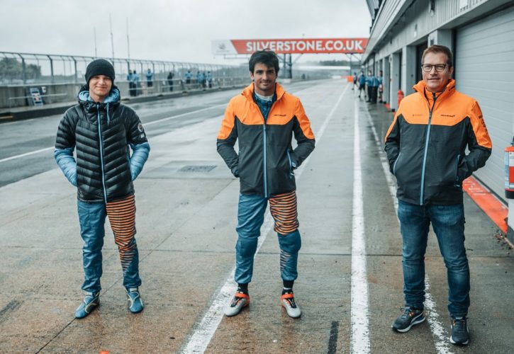 McLaren drivers Carlos Sainz and Lando Norris are up and running at Silverstone today, with the pair warming-up for the start of the 2020 season at the wheel of a pair of F3 cars supplied by Carlin.