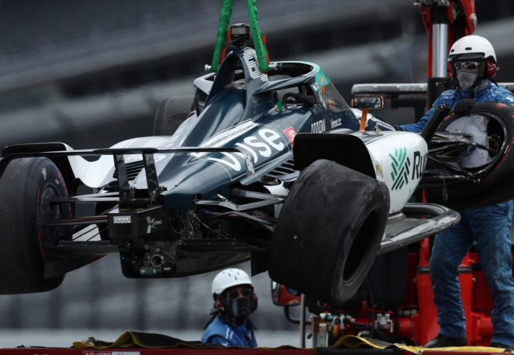 Fernando Alonso opened up the crash tally for the 2020 Indy 500, the Spaniard hitting the wall on the exit of Turn 4 on the second day of practice at the Speedway.