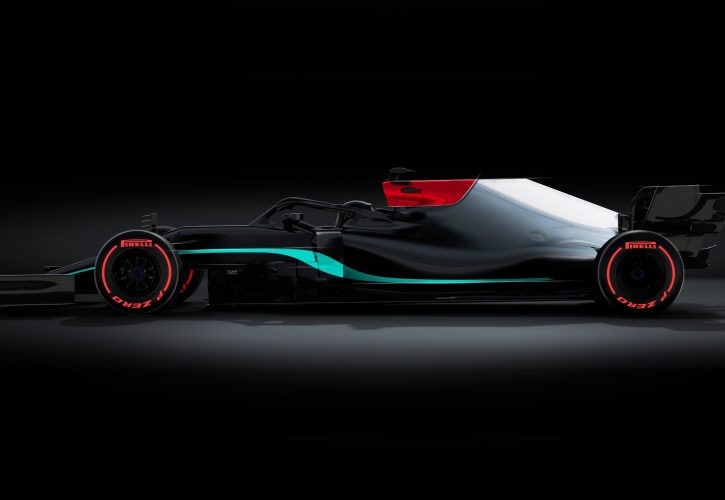 The rendering appears to show the new car's base scheme, with a fade from black to silver and a turquoise swoosh, while the W12's airbox features a red space likely devoted to team partner - and 33% new shareholder - Ineos.