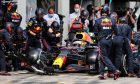 Hamilton was able to continue albeit with a damaged front wing while Ferrari's Charles Leclerc assumed the lead. But race control wisely decided to red flag the race to allow for the stricken Red Bull to be recovered and the barrier to be repaired.