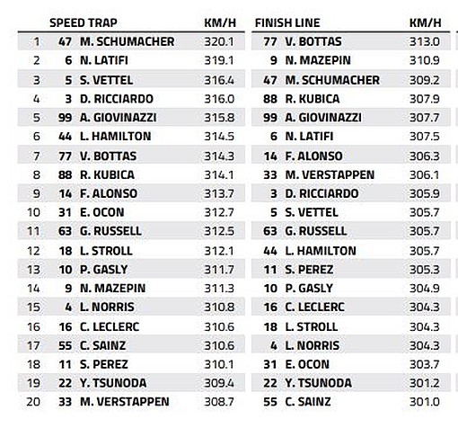 The Red Bull driver sped past Zandvoort's speed trap located at the end of the main straight at 308.7 km/h, a velocity that placed the Dutchman at the tail end of the readings, and almost 6 km/h slower than Hamilton's Mercedes which was recorded at 314.5 km/h.