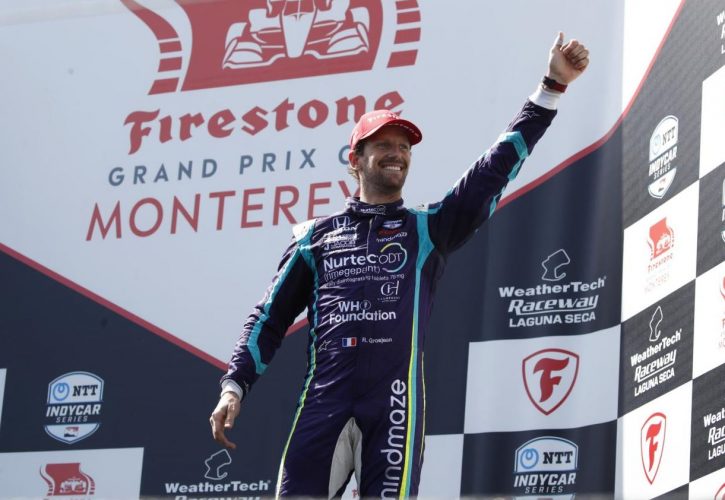 Romain Grosjean enjoyed a spectacular charge to his third IndyCar podium of the year at Laguna Seca on Sunday.