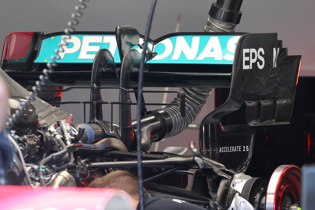 The rear wing on Lewis Hamilton's W12 failed a measuring test after qualifying, resulting in the Briton's exclusion from the Friday session in which he had set the fastest time.