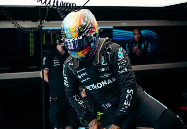 The Mercedes driver kicked off his day at the Losail International Circuit sporting a striking rainbow motif on his helmet in deference to the LGBTQ+ community.