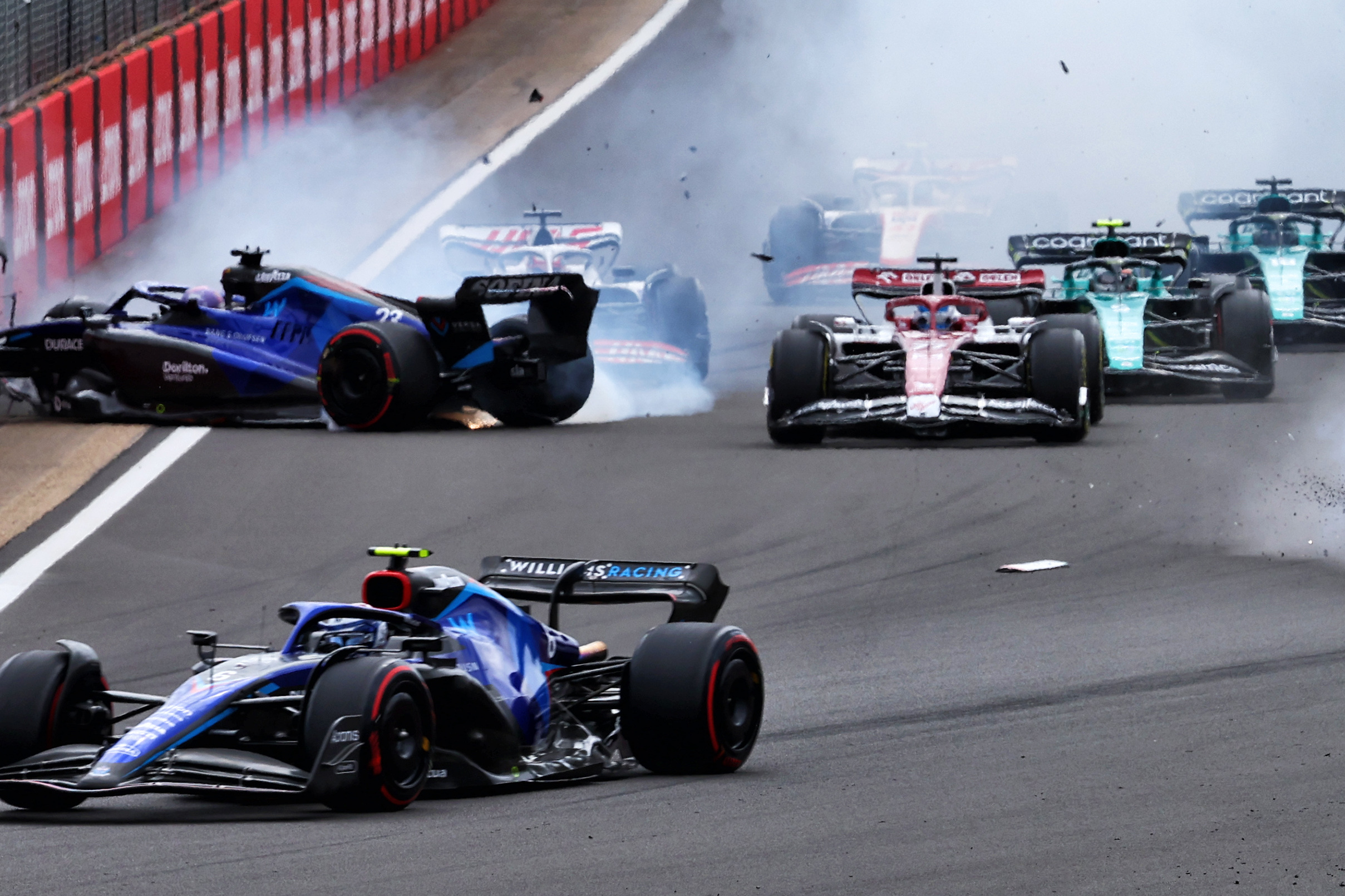 Unfortunately, Alex Albon ended up as collateral damage once the dust from the crash had settled, the Williams bearing the brunt of a head-on impact with the pitwall.