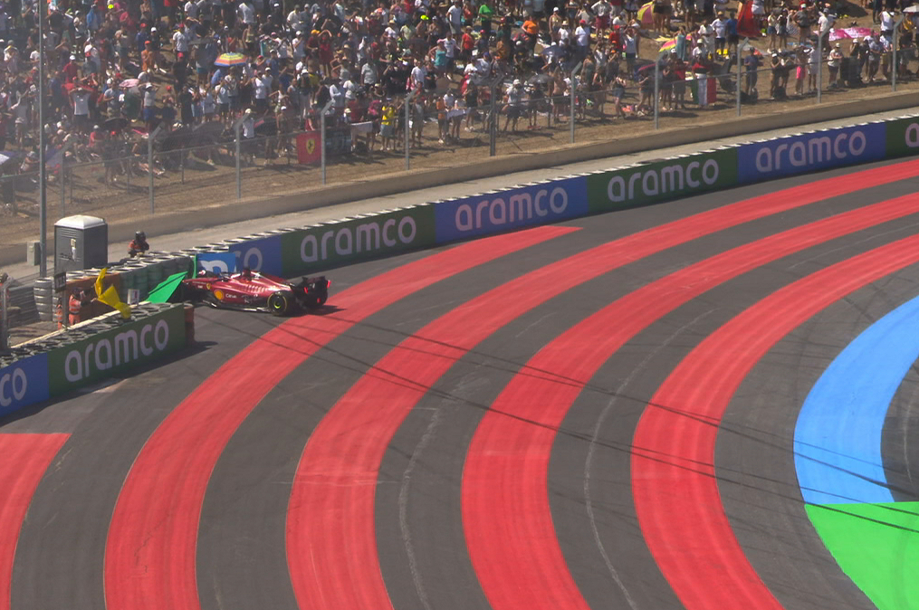 But on lap 18, the Ferrari driver ran wide at the second right-hand Beausset corner and spun head-on into the tyre barrier.