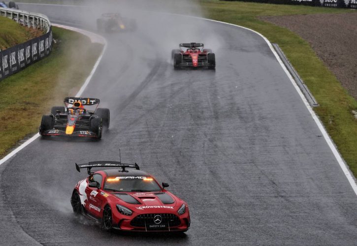 The race was neutralized behind the safety car after a single and then red flagged due to heavy rain and dangerous conditions.