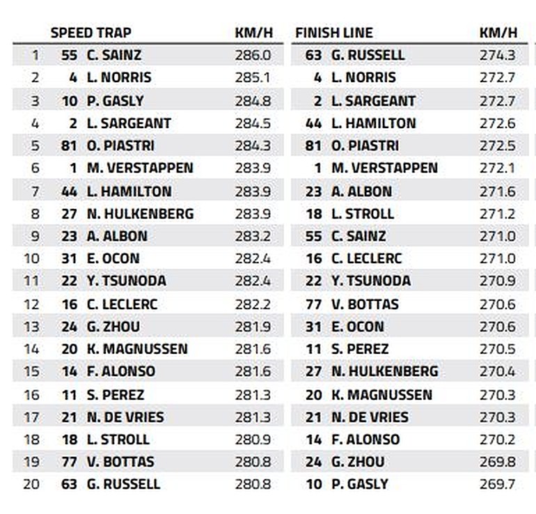 Nevertheless, Ferrari's Carlos Sainz – who qualified fifth – gets bragging rights for setting the fastest top speed in qualifying as measured on the run down to the harbor's chicane.