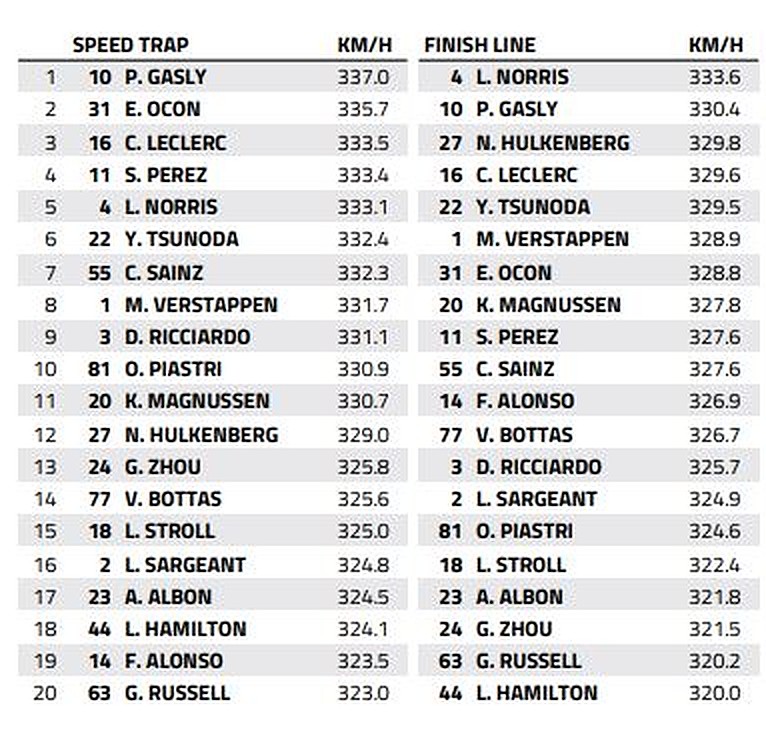 So we’ve purposefully selected the speed trap readings from Saturday's Sprint Shootout as they offered a better representation of the field’s velocity.