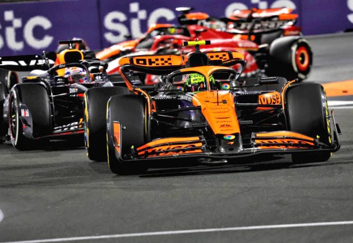 As far as the McLaren driver’s evening in Jeddah unfolded, starting from sixth, Norris was among the handful of driver – with Lewis Hamilton – who opted not to pit during the early Safety Car period which propelled him not the lead on lap 8.