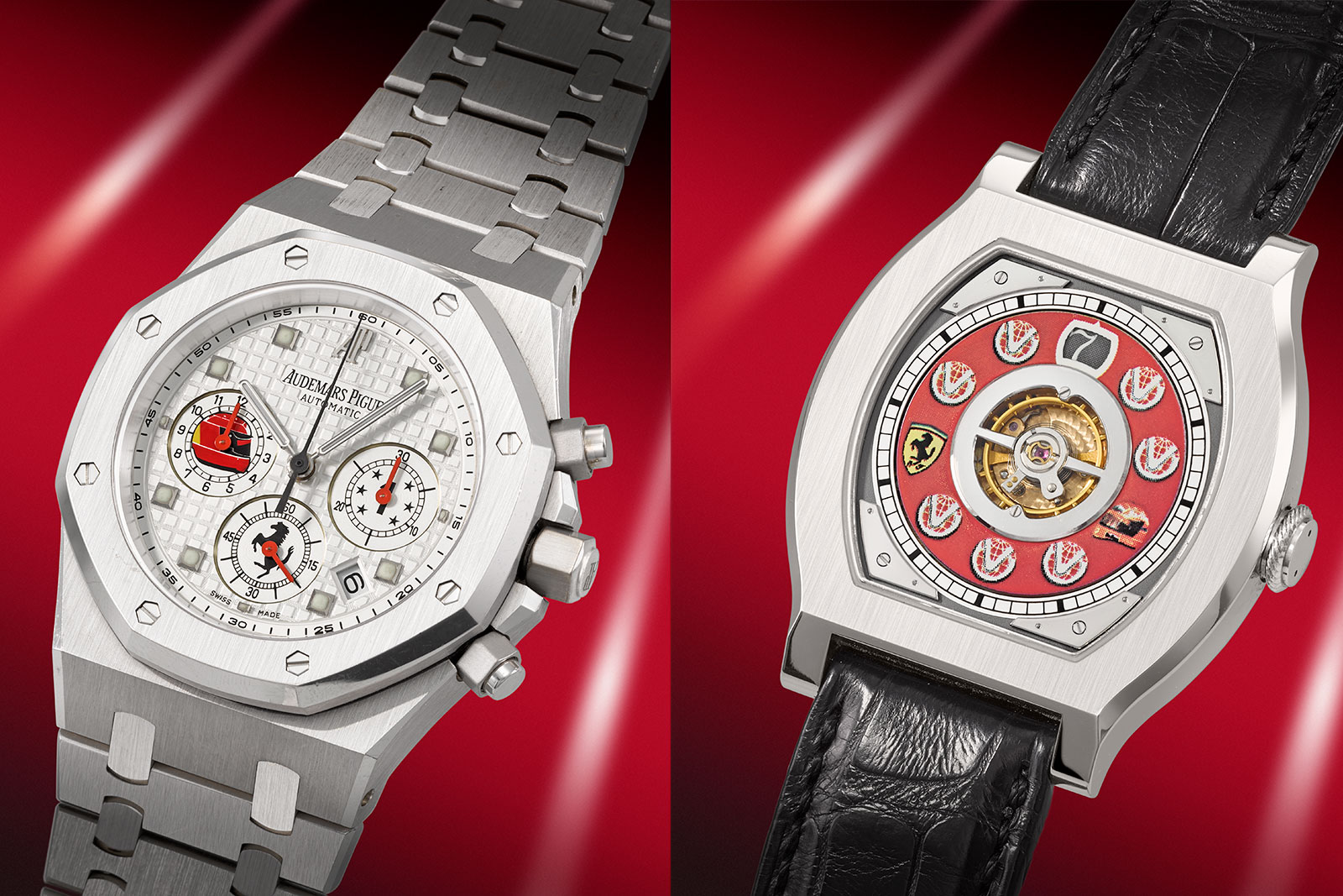 Another highly sought-after item was a personalized Audemars Piguet Royal Oak Chronograph, also gifted by Todt, emblazoned with the Ferrari prancing horse and Schumacher’s helmet which sold for 415,800 Swiss Francs, beating its 150,000 to 250,000 francs estimate.