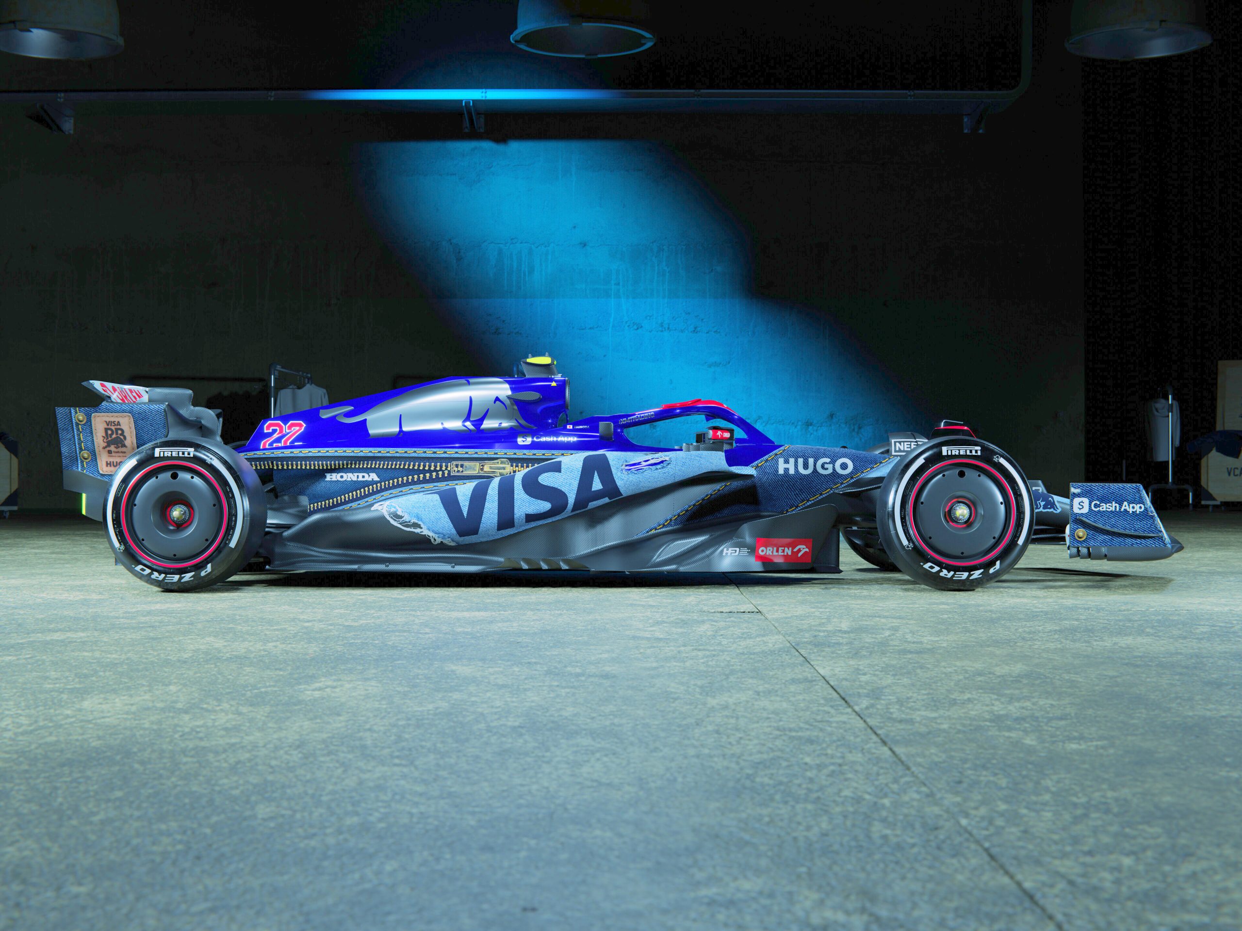 But the denim theme doesn’t stop with the car. Visa Cash App RB Racing’s pit garage will also get the denim treatment, with custom-designed furniture to match the team’s stylish look.
