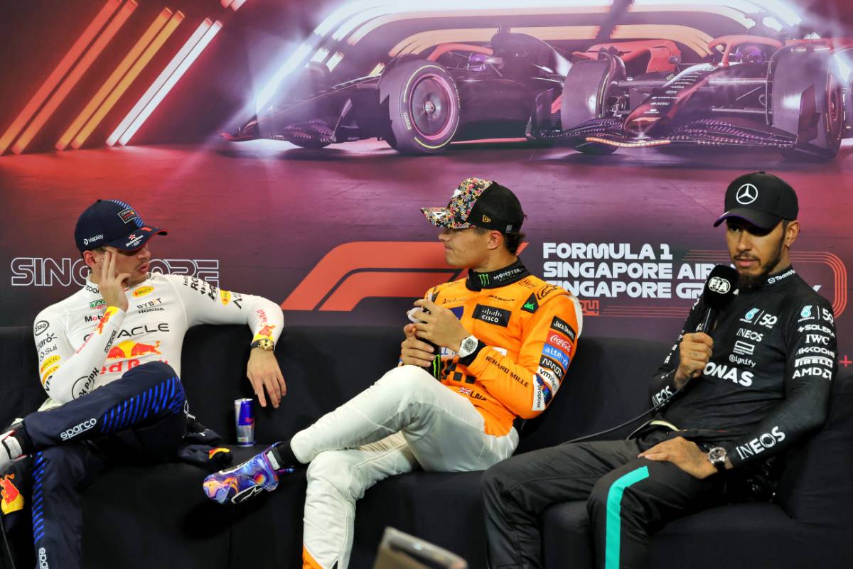 Verstappen was flanked by Lando Norris and Lewis Hamilton in the press conference, and the pair seemed to share the championship leader’s bewilderment.