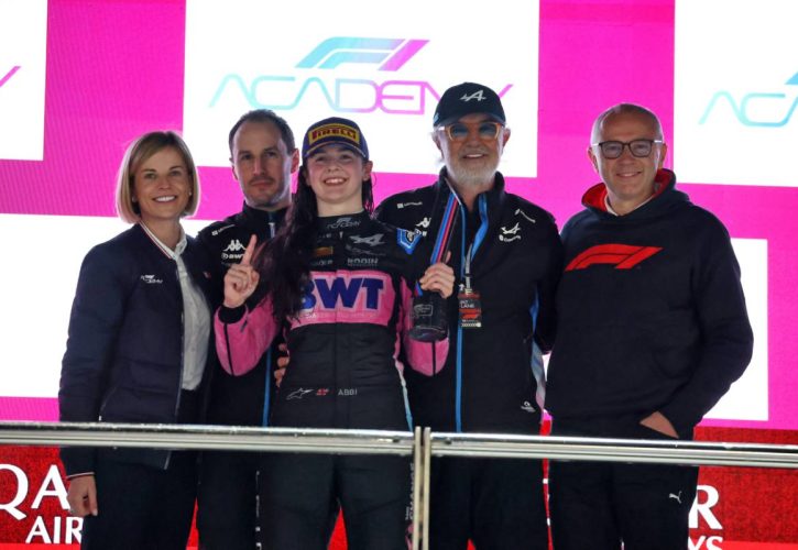 F1 Academy challenger and Mercedes protégé Doriane Pin on the grid in Qatar.
