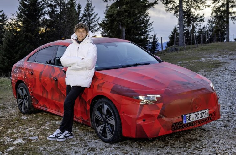 In the short film “Charging Up for 2025,” Antonelli takes a scenic drive through the snow-capped European Alps in a camouflaged version of Mercedes yet-to-be-released all-electric CLA.
