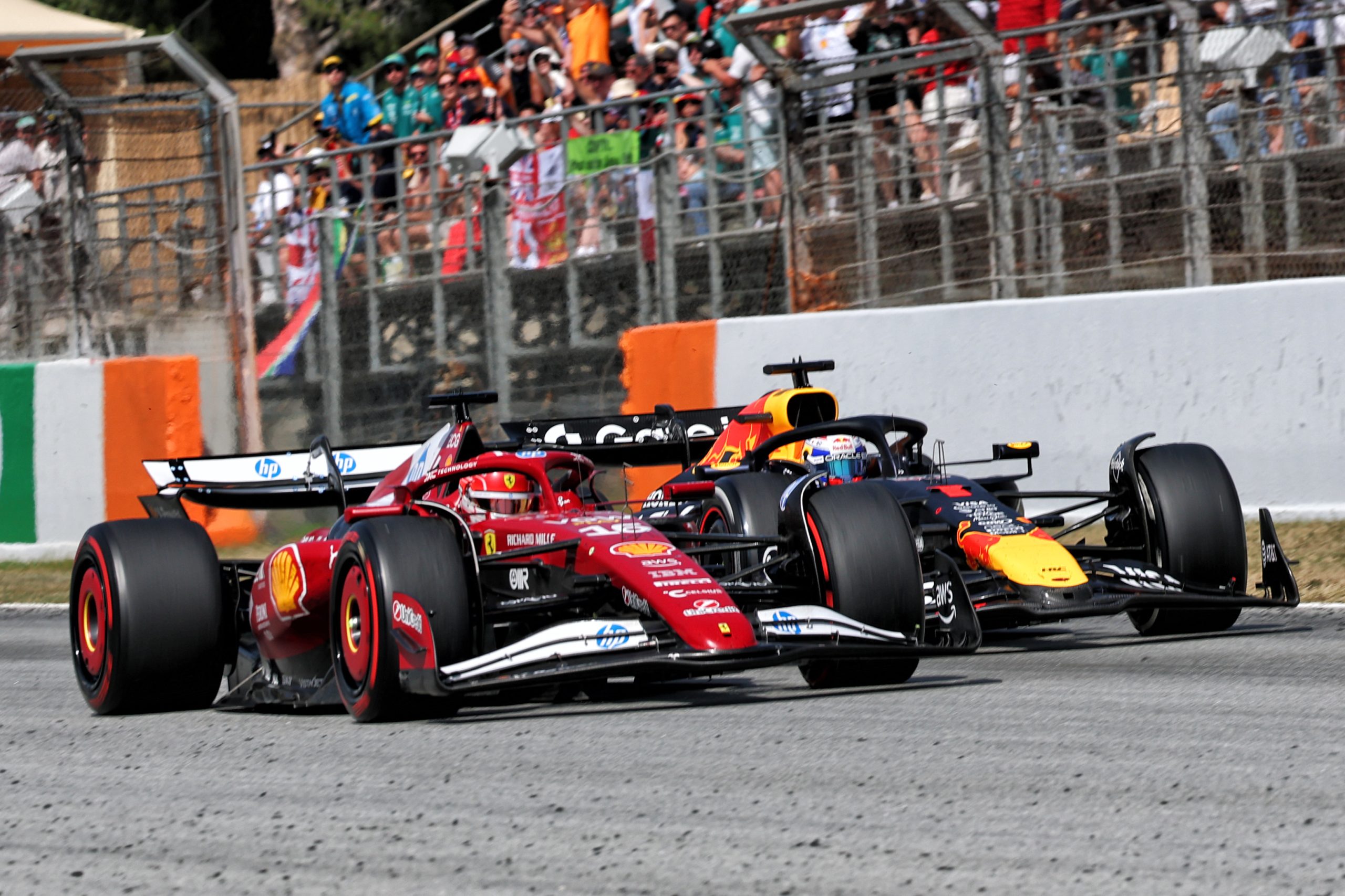 Coming out of the final corner, Verstappen lost traction, giving Leclerc a run down the pit straight. The two made contact before Turn 1 as Leclerc completed the pass.