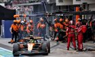 When racing resumed, Piastri briefly challenged Norris for the lead, but the McLaren driver soon reasserted control, pulling away as his teammate’s penalty and tyre strategy unraveled.
