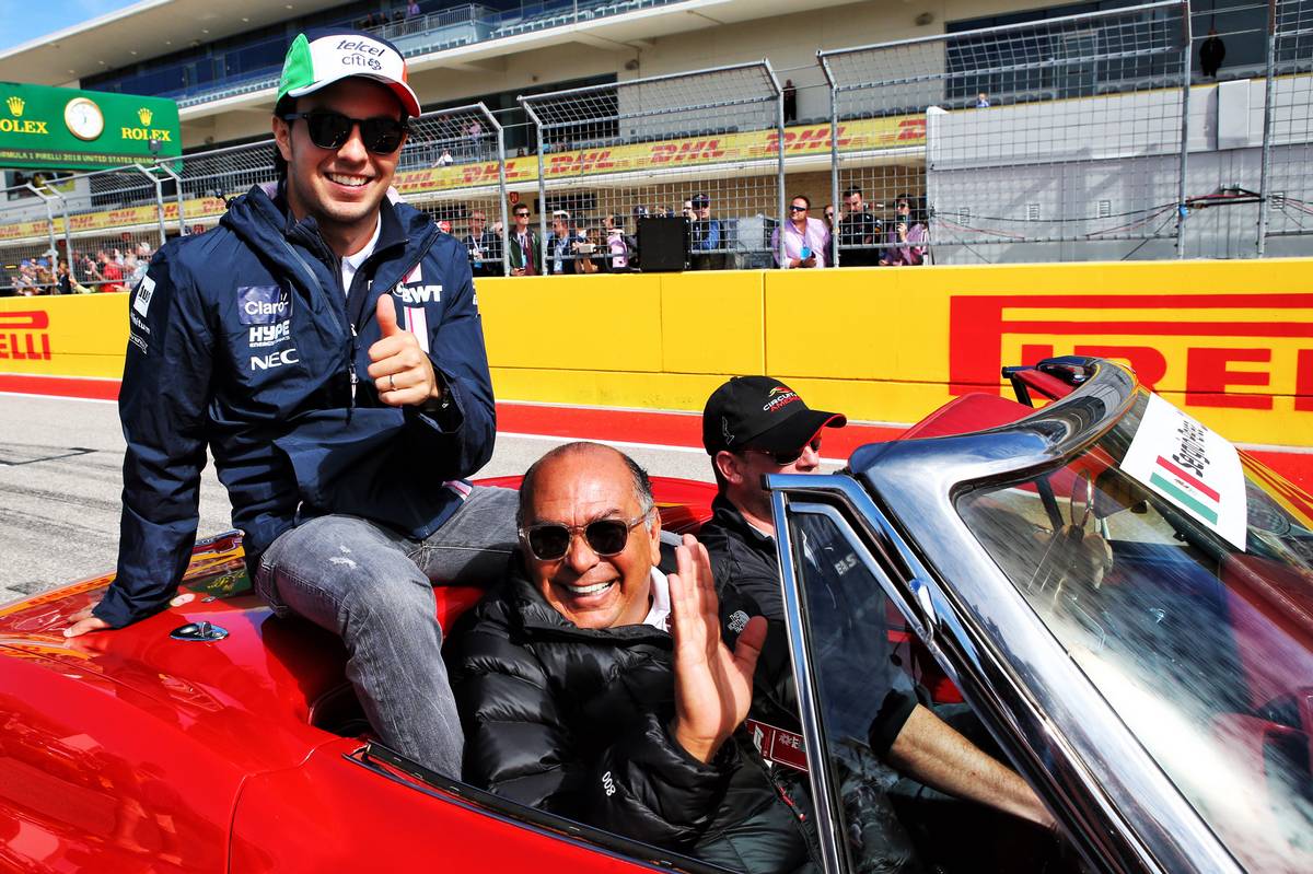 Sergio Perez with his father Antonio Perez, during the drivers parade at the US GP in 2018.