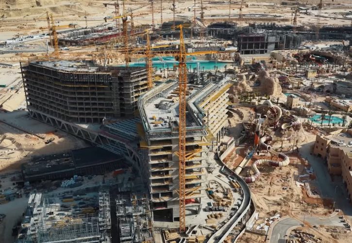 The desert floor is currently vibrating with the rhythm of heavy machinery as construction enters a transformative phase.